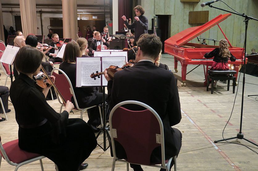 Старый ОсколНовостиНовости Старого Оскола и Белгородской областиСтарооскольские дети выступили на одной сцене с прославленными музыкантами Старооскольские дети выступили на одной сцене с прославленными музыкантами Ольга Ульянова 05.05.2018 12:04 В Старом Осколе и области 3992 Фото: Ольги Ульяновой. За фортепиано Софья Рощупкина. ДК «Комсомолец». Ярко-красное фортепиано на сцене притягивает взгляд. В окружении стульев и пюпитров оно так величаво расположилось в центре, будто и не сомневается, кто здесь главный. Зал быстро наполняется зрителями: многие с цветами, нарядно одетые. Нет сомнений, что через несколько минут начнётся действо, которое надолго останется в памяти у каждого. Ещё бы! Чтобы выйти на одну сцену с восемнадцатью юными музыкантами из Белгорода, Старого Оскола и Губкина, в наш город приехал Московский государственный симфонический оркестр для детей и юношества. Незадолго до этого его худрук, пианист Иван Рудин, и дирижёр Иван Великанов провели мастер-классы для детей. Всё это в рамках проекта «Класс от маэстро» благотворительного фонда Алишера Усманова «Искусство, наука и спорт». Концертная программа состояла из двух отделений с 15-минутным антрактом, так что ценители классической музыки вдоволь насладились красотой звучания инструментов. Первое отделение открылось увертюрой к опере «Руслан и Людмила» Михаила Глинки. Динамичная, торжественная, узнаваемая мелодия – не зря говорят, под хорошую музыку и ножка невольно притопывает. Это единственное произведение, которое оркестр исполнил без юных музыкантов. Ну а далее в первом отделении нас ждали сочинения Моцарта, Вивальди, Чайковского, Шостаковича, Рахманинова, Баха. Второе отделение подарило нам удовольствие от прослушивания произведений Грига, Венявского, Гайдна, Глюка, Чайковского, Сен-Санса, Космы, Шнитке и Бабаджаняна. Ну до чего разные и каждая по-своему изумительные вещи! Чтобы описать эмоции, которые рождают эти произведения, кажется, слов даже нашего богатого языка не хватит. После каждого музыкального шедевра зрители ладошки не жалели. Дирижёр Иван Великанов.ДК «Комсомолец». Фото Ольги Ульяновой. Проект «Класс от маэстро», пожалуй, особенно яркие воспоминания оставляет у юных участников. В прошлом году таких счастливчиков в нашей области было тринадцать, после нескольких мастер-классов от столичных музыкантов они выступили с концертом в сопровождении Московского камерного оркестра «Времена года». Услышав о продолжении проекта, ребята изо всех сил старались стать участниками и в этом году. В их числе и Алина Близнюк, ученица старооскольской детской музыкальной школы №5. Юная скрипачка занимается музыкой 8 лет, на концерте она исполнила «Мелодию» Петра Чайковского. – Если описать впечатления от концерта парой слов – это полный восторг! Это что-то неописуемое! – Алине непросто перевести дух сразу после выступления. – На мастер-классах я занималась с дирижёром Иваном Великановым. Хоть он и не скрипач, его советы оказались наиболее ценными. Ведь он как дирижёр видит произведение целиком, в исполнении оркестра, то есть шире, чем я. Концерт в рамках проекта «Класс от маэстро».ДК «Комсомолец». Фото Ольги Ульяновой. Радость и трепет от выступления с известными музыкантами, схожие с эмоциями Алины Близнюк, испытывали все участники. Если бы зритель мог заг