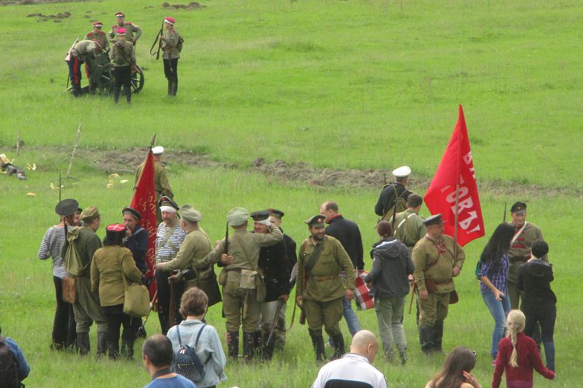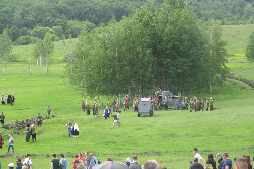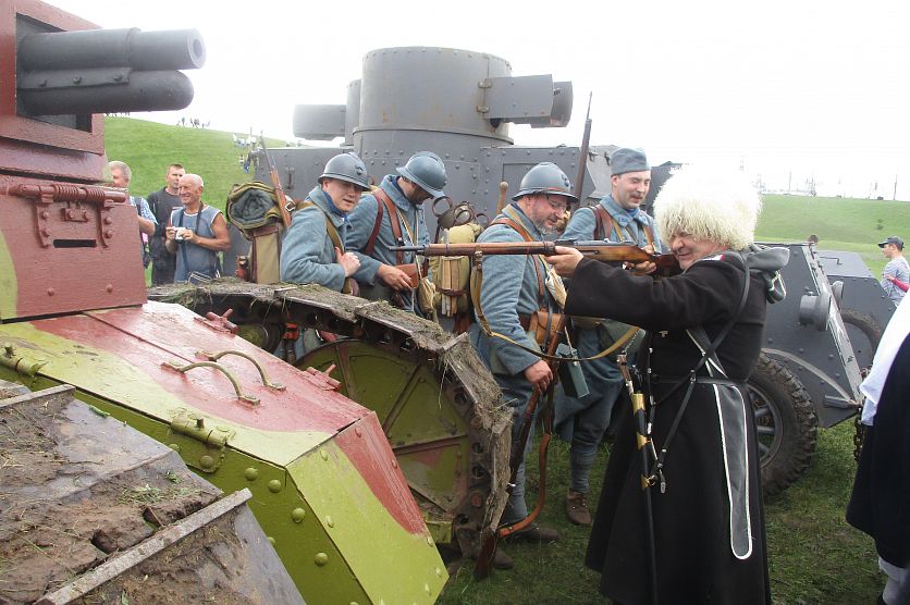 Старый ОсколНовостиНовости Старого Оскола и Белгородской областиГражданская война. Битва за Белгород (впечатления зрителей и фоторепортаж) Гражданская война. Битва за Белгород (впечатления зрителей и фоторепортаж) Лариса Ульяненко 22.05.2018 10:05 В Старом Осколе и области 4271 Фото: Екатерины Тюпиной. Канонада, взрывы, крики «раненых» и стоны «убитых» – всё смешалось на поле боя. У села Головино под Белгородом прошла реконструкция сражения времён Гражданской войны. В ней приняли участие около 250 «корниловцев», «бойцов офицерского пехотного полка», «французов», «красных» и «анархистов» из разных регионов страны. И впервые была представлена тяжёлая бронетехника. Sergey Lysikov: реконструкция одного из сражений Гражданской войны под Белгородом. – Что и говорить, масштабно! Мы даже слегка оглохли, так всё грохотало. И, что больше всего удивило так это то, что даже после битвы «французы», «махновцы» и «красноармейцы» общались так же, как это было на заре ХХ века, – делится Екатерина Тюпина. – То есть представители Антанты говорили на французском, у казаков слышался такой, знаете, типичный донской говорок. Становилось понятно, что для людей это не просто забава, а что-то очень личное, то, что составляет важную часть их жизни. Разговорились с одним из участников, приехавшим из Сергиева Посада. Вот что он рассказал: — У настоящих реконструкторов, тех, кто глубоко в теме, есть чёткое деление. Нельзя быть сегодня за «белых», завтра за «красных. К примеру, я всегда на стороне Рабоче-Крестьянской Красной армии. Форму заказываем на одной из подмосковных фабрик. И это удовольствие не из дешёвых. Форма времён Первой мировой шьётся в соответствии с приказами военного ведомства 1916 года. Она неотличима от той, в которую были экипированы части Русского экспедиционного корпуса во Франции. В качестве подспорья — книги по кройке и шитью военного костюма за 1913 год. Форма шьётся по канонам тех лет. Фото Екатерины Тюпиной. С техникой – та же история. Только её не делают на заказ, а пытаются восстановить. Французский танк Renault FT-17, бронеавтомобиль «Остин-Путиловец», пулемётная бронемашина «Руссо-Балт С» 1914 года – всё это прибыло под Белгород из Петербурга. Конечно, не своим ходом, а на грузовиках. И всё это воссоздано по старинным чертежам. Бронетехника Первой Мировой Фото Екатерины Тюпиной Чтобы к тому, что осталось от танка пришло второе дыхание, нужно порядка пяти миллионов рублей. Но многое зависит от того, в каком виде достаётся техника. Если одна лишь рама – расход средств немалый, сохранилось больше «родных» деталей, денег понадобится чуть меньше. Интересно, что основным поставщиком «запчастей» является Афганистан. Там подбитой и не утилизированной бронетехники – масса. Но вернёмся к сражению. Чтобы люди понимали, что, собственно, происходит, события комментировались через микрофон. Вот «загорелся» «наш» броневик, вот красноармейцы сдаются в плен, медсестра тащит раненого, из-за леса бьёт батарея, солдаты примыкают свои штыки к винтовкам, чтобы отбить хотя бы одну пушку. А вот «анархисты» показывают свою сущность, грабя лагерь интервентов (махновцам без разницы у кого брать добычу: белые ли, красные, заморская подмога из Антанты). Показали и то, как выживали в таких условиях мирные жители, вынужденные держать нос по ветру, приспосабливаясь то к одной власти, то