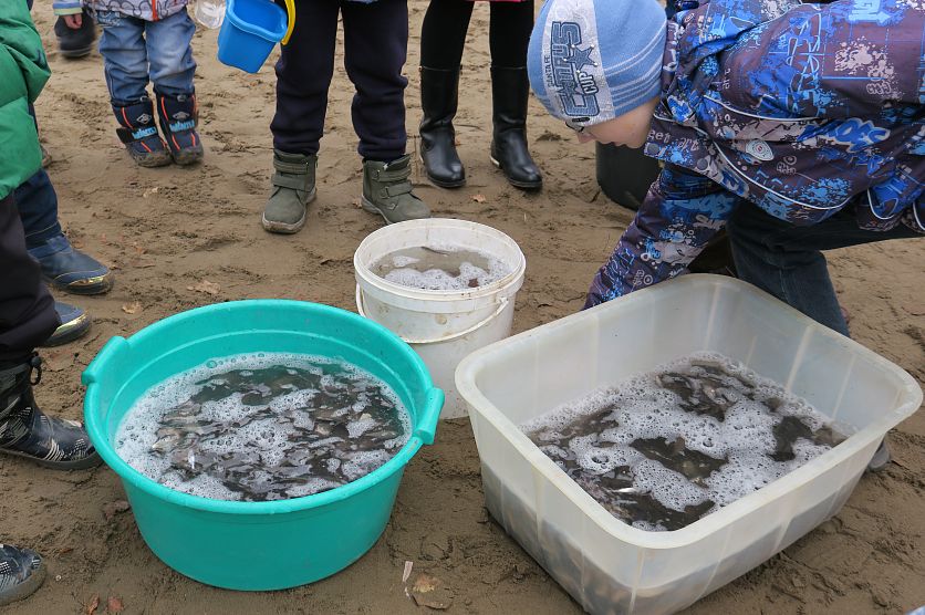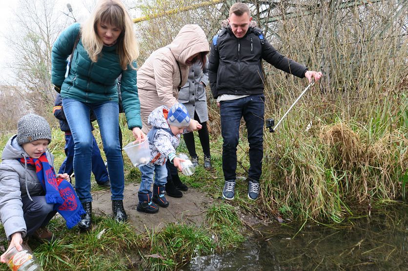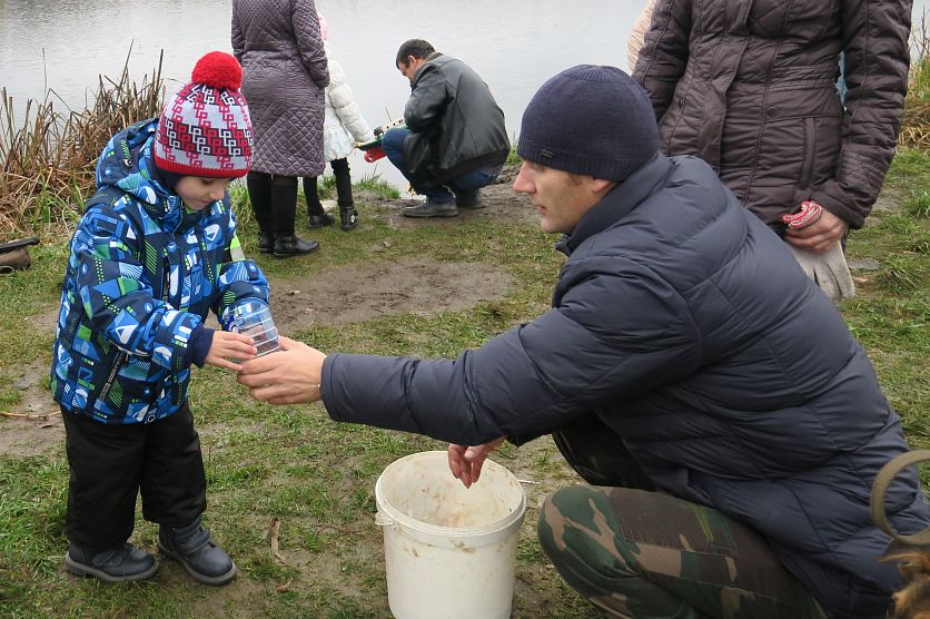 Старый ОсколНовостиНовости Старого Оскола и Белгородской областиКак старооскольцы желания загадывали (фоторепортаж) Как старооскольцы желания загадывали (фоторепортаж) Ольга Ульянова 11.11.2018 12:46 В Старом Осколе и области 3378 Фото: 50 кг мальков карася выпустили участники акции в Осколец, загадывая желания. Фото Ольги Ульяновой. Акция «Золотая рыбка» превратила обычную процедуру зарыбления в маленькое волшебство. Любой желающий мог взять у организаторов рыбку (причём не одну) и, загадав желание, выпустить в Осколец. Желания подчас были самые потешные... Первая акция с таким названием прошла в нашем городе 3 ноября, и на неё, как пишут в соцсетях, откликнулись около 30 человек. Вторая спустя неделю собрала на пляже около микрорайона Юность как минимум в два раза больше старооскольцев, верящих в чудеса. Рыбу выпускали в двух местах на пляже у микрорайона Юность. Фото Ольги Ульяновой. Организатор акции – общественное объединение «Народный контроль», которое девять месяцев назад основал Евгений Александров. — Несмотря на то, что наше объединение молодое, его костяк – уже около 50 человек, - рассказал Евгений. У нас много интересных идей, все они направлены на то, чтобы сделать мир добрее, лучше. Что касается зарыбления, то это далеко не первая акция: при поддержке управления рыбохраны мы выпустили в старооскольские водоёмы около 18 тонн рыбы. А сегодняшнюю акцию поддержал Анатолий Базаров, который выделил 50 килограммов мальков карася. Руководитель общественного объединения «Народный контроль» Евгений Александров. Фото Ольги Ульяновой. Народ, узнав об акции «Золотая рыбка», начал собираться на пляже заблаговременно. В основном пришли семьи с маленькими детьми: родители хотели поддержать в малышах веру в чудеса. Раздача золотых рыбок. Фото Ольги Ульяновой. Не рады были, наверно, только рыбаки, которые, как известно, предпочитают удить спокойно, без суеты. Но вникнув в суть акции, хмуриться они перестали. «Конечно, зарыбление – дело хорошее!» – прокомментировал один их них. Говорят, здесь водится практически вся речная рыба, не только окуни и щуки... Летом на крючок попадается и крупная рыба, а по осени уже клюёт редко. Рыбаки к суете отнеслись с пониманием. Фото Ольги Ульяновой. Оскольчанка Евгения Шипилова пришла на пляж с шестилетним сыном Женей. У мальчика желаний много, потому за рыбками пришлось ходить не раз. Евгения Шипилова с сыном Женей. Фото Ольги Ульяновой. – Во-первых, хочу, чтобы зубы крепче держались! – перечисляет мальчуган, поглядывая на рыбок в обрезанной пластиковой полторашке. – Во-вторых, хочу никогда не болеть. Ах да, ещё хочу «нёрф» (это игрушечный пистолет, – прим.авт.)... Рыбки уплывают расти и исполнять желания. Фото Ольги Ульяновой. Евгения смотрит на сына с умилением и запоминает его желания, чтобы потом исполнить то, что в её силах. Она замечает: «Акция супер! Нам всем подняли настроение. А что ещё нужно?». Женя задумался: что бы ещё загадать? Ведь важно ничего не упустить! Было уморительно наблюдать, насколько серьёзно дети подошли к этому вопросу. Некоторые из них три-четыре раза подходили к воде, не решаясь выпустить рыбку: надо подумать получше, может, что-то другое загадать? Процесс ускорился после того, как родители начали подбадривать малышей: «Ну, выпускай уже. Если хочешь, пошли ещё несколько рыбок попросим, раз 