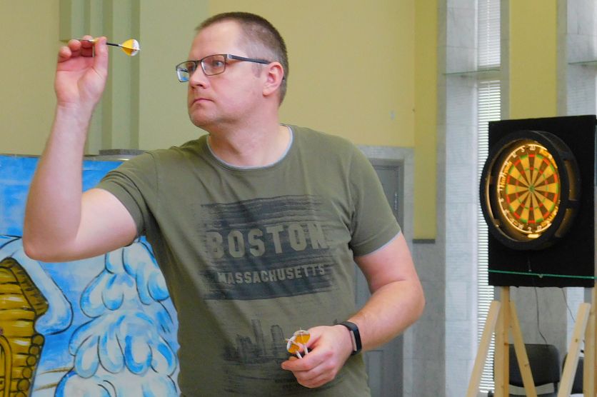 Старый ОсколНовостиНовости Старого Оскола и Белгородской областиО тонкостях игры в дартс рассказали участники турнира в Старом Осколе О тонкостях игры в дартс рассказали участники турнира в Старом Осколе Елена Светлая 11.01.2020 08:05 В Старом Осколе и области 4687 Фото: Сергей Фадин. 8 января, в последний день новогодних выходных, в Старом Осколе состоялся дружеский турнир по игре в дартс. Соревнования проходили в Центре молодёжных инициатив, в меткости состязались восемь оскольчан и гости из Белгорода, Губкина, Воронежа, Бирюча и Курчатова. На предварительном этапе спортсменов разделили на четыре группы. Из каждой в плей-офф выходили двое лучших, и далее играли «на вылет». В финале сошлись губкинец Евгений Дубровин и староосколец Станислав Белец. Станислав Михайлович, к слову — самый опытный дартсмен Старого Оскола и самый возрастной участник турнира, ему 75 лет. Дуэль лучших завершилась победой Евгения Дубровина. Станислав Белец (слева) и Евгений Дубровин. Фото: Сергей Фадин. Был разыгран и «утешительный финал» среди тех, кто не попал в плей-офф. В этом разделе главный приз завоевал Александр Козырев — организатор турнира, председатель Белгородского регионального отделения «Федерации дартс России». Видео Елены Светлой. Многоликий дартс Как рассказал Александр Козырев, правил игры в дартс существует великое множество. Простейший вариант — игроки по очереди бросают дротики в мишень, стараясь попасть как можно ближе к центру, либо набирают очки, поражая определённые зоны. Мишени, кстати, имеют различный вид — есть «круговая» (аналог стрелковой), есть с разделением по секторам. Мишени для игры в дартс бывают разные. Фото: с сайта tabulagames.ru. Новички нередко выбирают «Сектор 20», где засчитываются попадания лишь в этот сектор. Те, кто уже набил руку, — могут сыграть в «Булл», «Раунд», «Крикет», «Киллер», любую из их разновидностей, либо выбрать что-то ещё (с существующими правилами можно ознакомится, например, на этом сайте). Не возбраняется изобрести и что-то своё. — Как-то мы проводили дружеские соревнования по очень забавным правилам, которые придумали сами, решив уравнять шансы новичков и опытных игроков. Турнир назвали «Обыграй мастера». Новичок кидал дротик, а мастер должен был набрать столько же очков. Оказалось, не так-то просто это сделать, - рассказывает Александр Козырев. Председатель Белгородского регионального отделения «Федерации дартс России» Александр Козырев. Фото: Елена Светлая / ООО «Медиацентр». Турнир в Старом Осколе проходил по правилам «501» — это одна из наиболее распространённых разновидностей игры в дартс среди тех, кто занимается им серьёзно. Её же считают и самой интеллектуальной. Ведь для того, чтобы показать хороший результат, нужно не только продемонстрировать меткость, необходимо также быстро считать, стратегически мыслить. И именно по этим правилам проводятся чемпионаты мира в Англии (кстати, на недавнем чемпионате мира по игре в дартс, который завершился 1 января 2020 года, призовой фонд составил 2,5 млн фунтов, в пересчёте на наши деньги — около 200 млн рублей). Правила игры в «501» (щёлкните по стрелочке) Каждому участнику в каждой партии начисляется 501 очко, за время игры нужно их списать до нуля быстрее соперника. Соперники по очереди совершают подходы к мишени и бросают по три дротика. Баллы списываются после