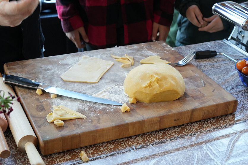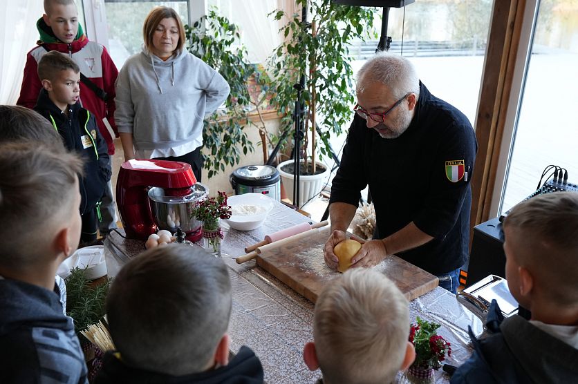 Старый ОсколНовостиФоторепортажиСтарооскольцев научили делать настоящую итальянскую пасту Старооскольцев научили делать настоящую итальянскую пасту Ирина Милохина 06.10.2025 14:30 Фоторепортаж 1397 Фото: Александра Белашова Кажется, что может быть проще: мука, вода, соль, оливковое масло… Однако, как в любом деле, здесь есть свои нюансы. Секретами приготовления разных видов пасты – орекьетте, фузилли, тальятелле, кавателли, лазанья – поделился на кулинарном мастер-классе шеф-повар Маурицио Кастеллуццо. А его «учениками» на время стали дети-сироты и дети, оставшиеся без попечения родителей, Старооскольского центра развития и социализации «Старт», а также подопечные Старооскольского дома-интерната для престарелых и инвалидов. Мастер-класс провели 2 октября в парке семейного отдыха «Кладовка». А организовали его сотрудники ОЭМК – волонтёры корпоративной программы «Вместе! С призванием». «Это – часть проекта «Вкусные истории», который несколько лет назад был победителем грантового конкурса Металлоинвеста «Вместе! С моим городом», – рассказала автор проекта, начальник СОК «Белогорье» Мария Загородняя. – Сегодня он обрёл вторую жизнь. Идея объединить воспитанников детских домов и пожилых граждан, жителей дома-интерната, возникла, чтобы помочь социализировать эти категории людей. Так родились эти встречи – душевные и радостные. Они их ждут, знают уже друг друга и готовят подарки. Это не просто встречи, а уже настоящая дружба». У Вячеслава Кайгородова – большая и интересная жизнь за плечами. Работал он и на Оскольском комбинате. И ему есть о чём рассказать мальчишкам и девчонкам. «Я сам рос без отца, а в 1943 году был усыновлён человеком, который пять лет был в ГУЛАГе в одном бараке с Рокоссовским. Он меня воспитал и приучил трудиться. Я служил на Тихоокеанском флоте, и вот сегодня принёс с собой военный бинокль, чтобы детям показать. Хорошее мероприятие, которое объединяет людей». 15-летняя Валерия Прокопова признаётся, что в «Кладовку» приезжает уже второй раз, и ей здесь всё очень нравится. «Мы и раньше проводили такие встречи, делали окрошку, вафли, блины, а потом всех угощали, – говорит девочка. – Я готовить научилась, мне это пригодилось. Сейчас учусь в девятом училище на озеленителя, и иногда балую своих соседок по комнате». После прогулки по парку и мастер-класса взрослые и дети отведали свежеприготовленную пасту и выпили горячего чая. Фоторепортаж: кулинария дети несовершеннолетние Вкусные истории Вместе! С призванием Вместе! С моим городом Мы в Telegram Вернуться к списку новостей Предложить новость